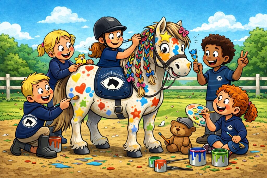 Een gezellige ochtend inclusief drinken en wat lekkers. Poetsen, spelletjes, alles met en rondom de paarden & pony’s